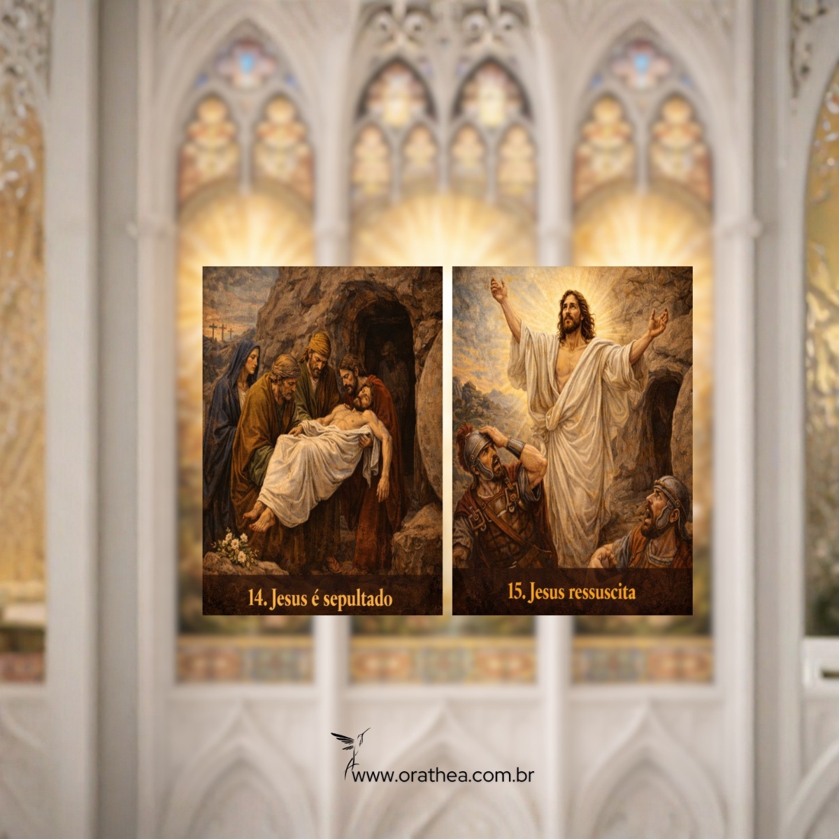 Kit Via Sacra em MDF com 15 Placas Estações da Paixão de Cristo 14x20cm Decoração Religiosa Católica Orathea