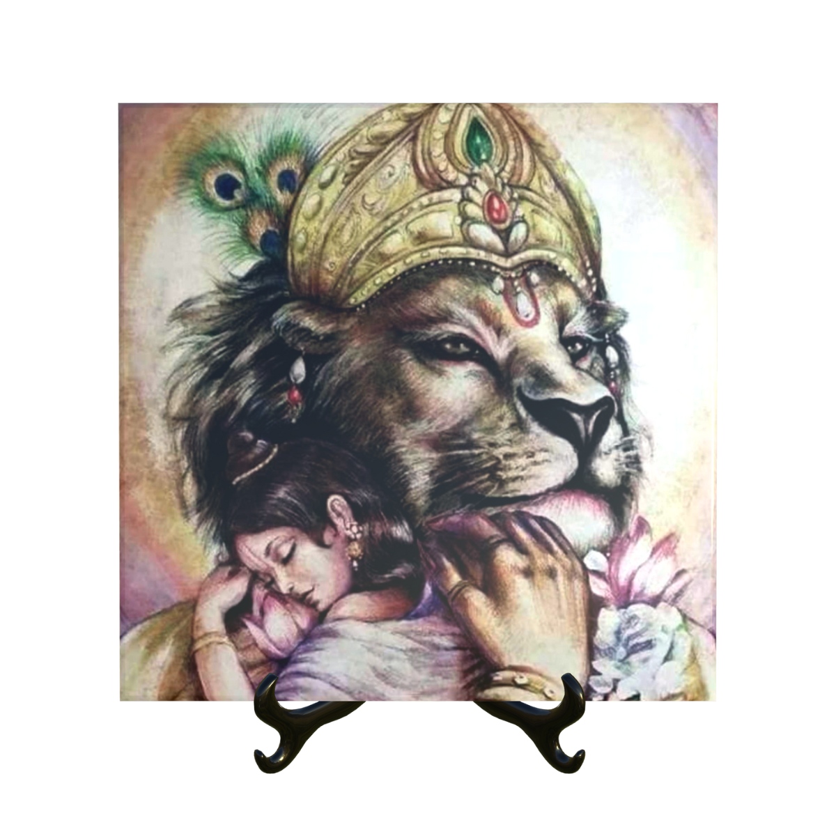 Quadro Azulejo Narasimha com suporte Orathea Decorativo