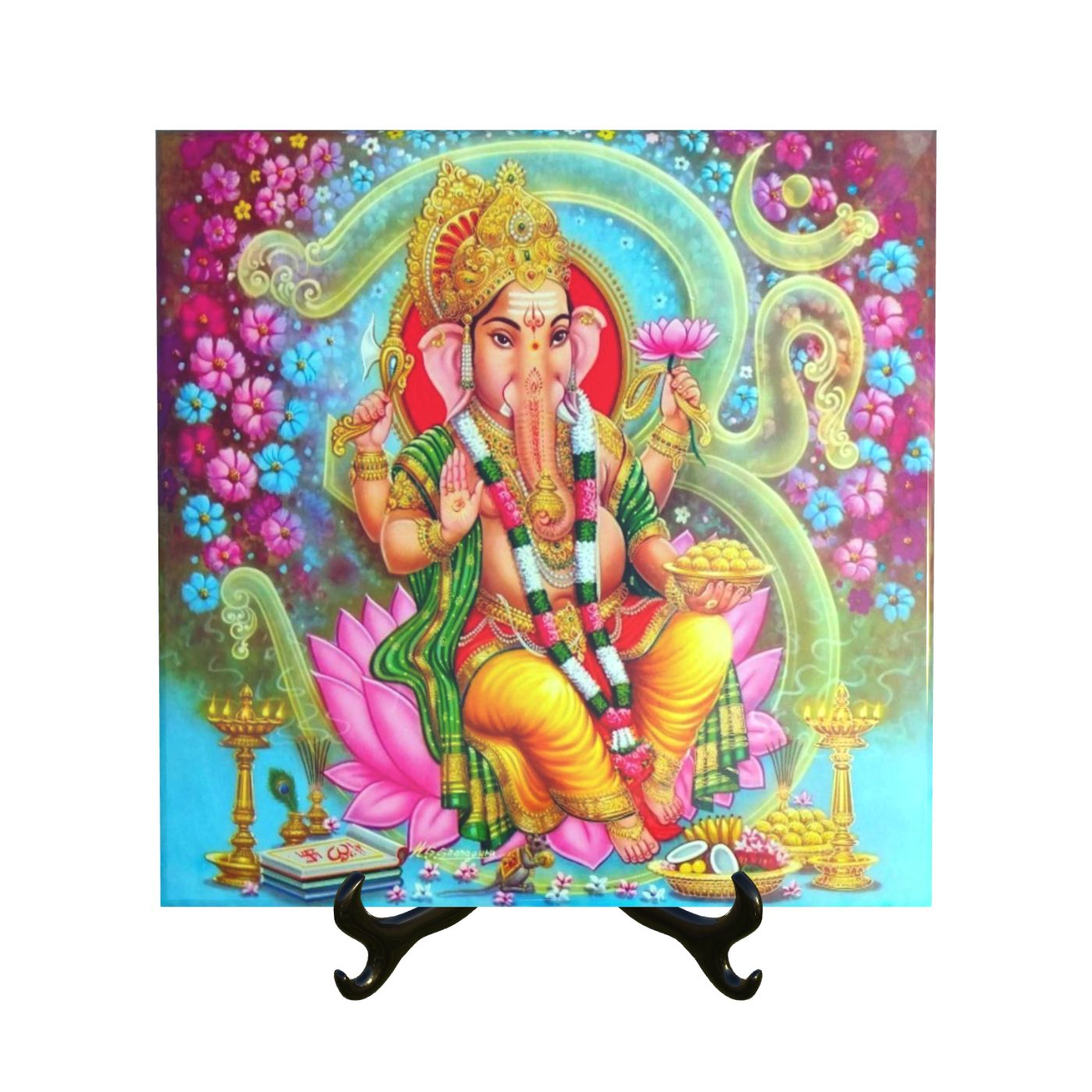 Quadro Azulejo Ganescha com suporte decorativo Orathea