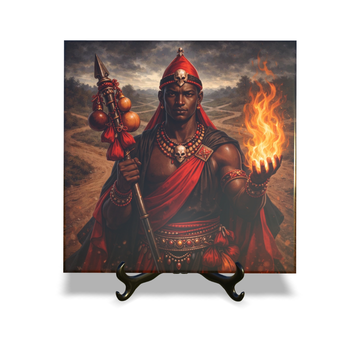 Quadro Azulejo Orixá Exú com suporte Orathea Decorativo