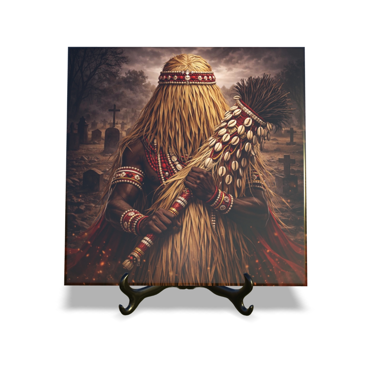 Quadro Azulejo Orixá Obaluaê com suporte Orathea Decorativo