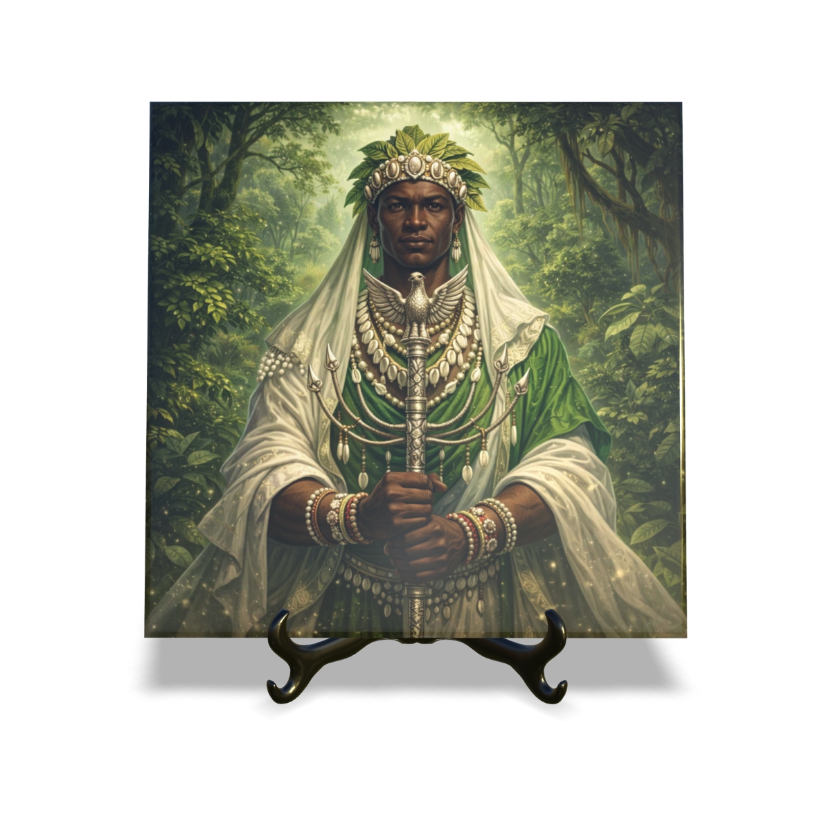 Quadro Azulejo Orixá Ossaim com suporte Orathea Decorativo