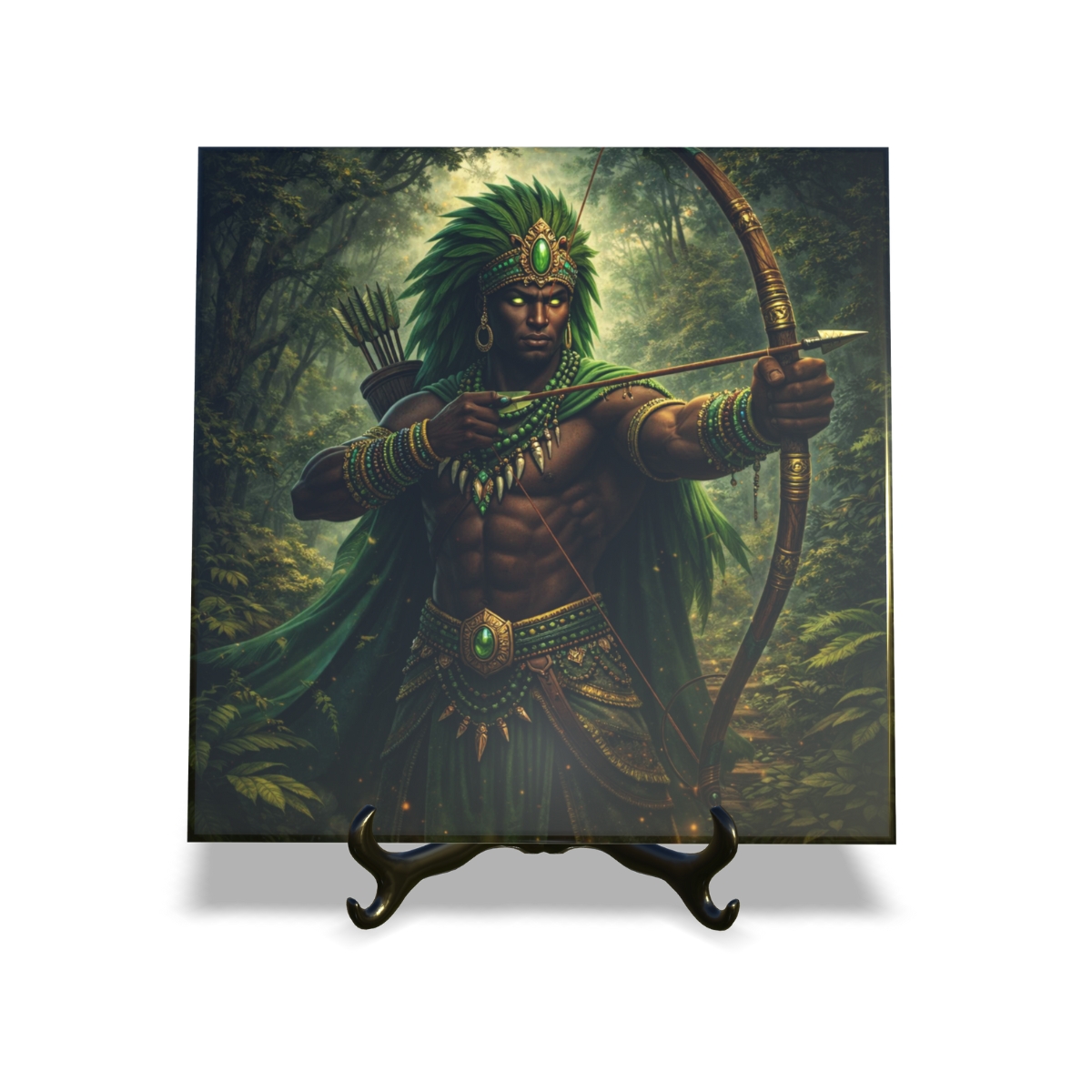 Quadro Azulejo Orixá Oxossi com suporte Orathea Decorativo