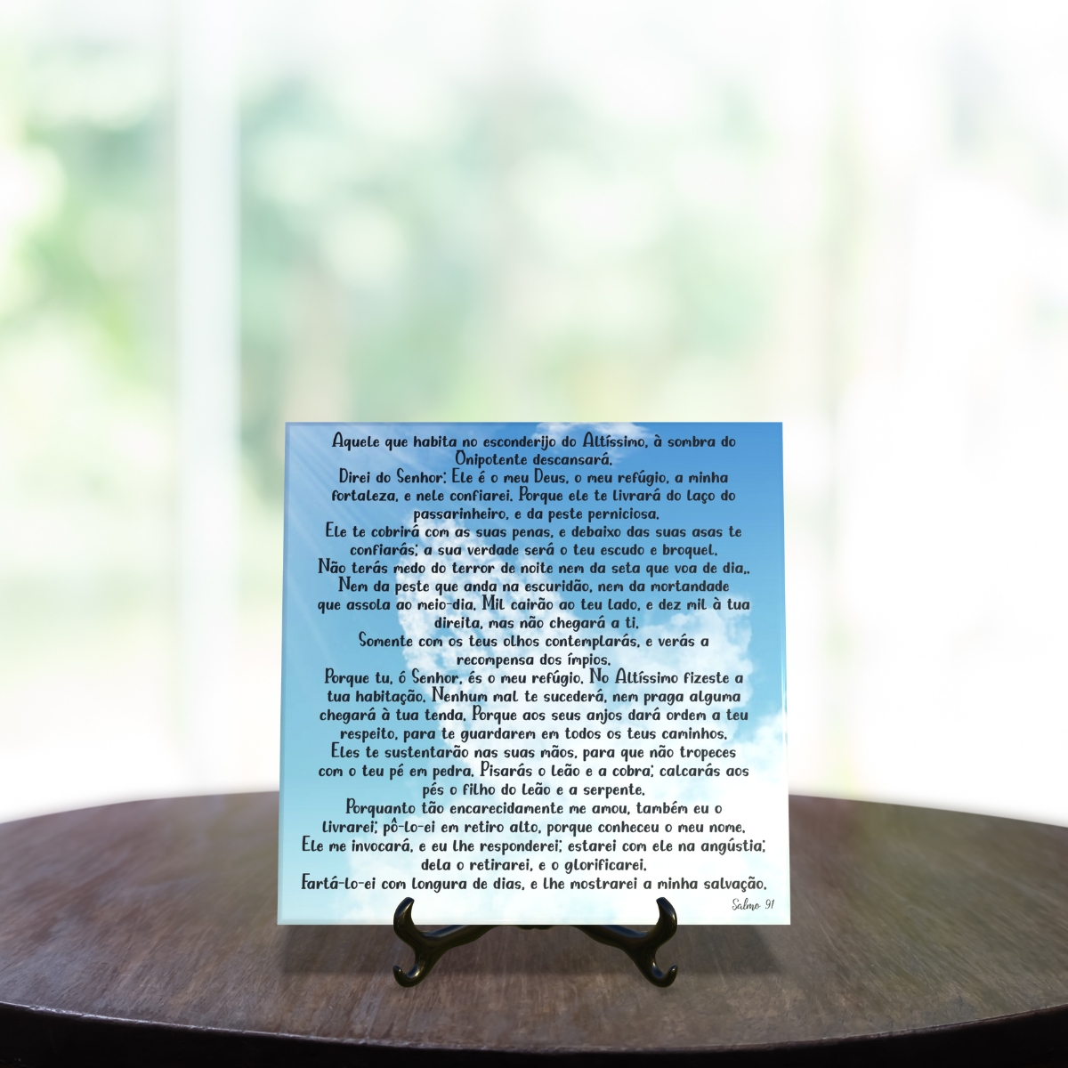 - > Quadro Azulejo Salmo 91 Religioso com suporte Orathea