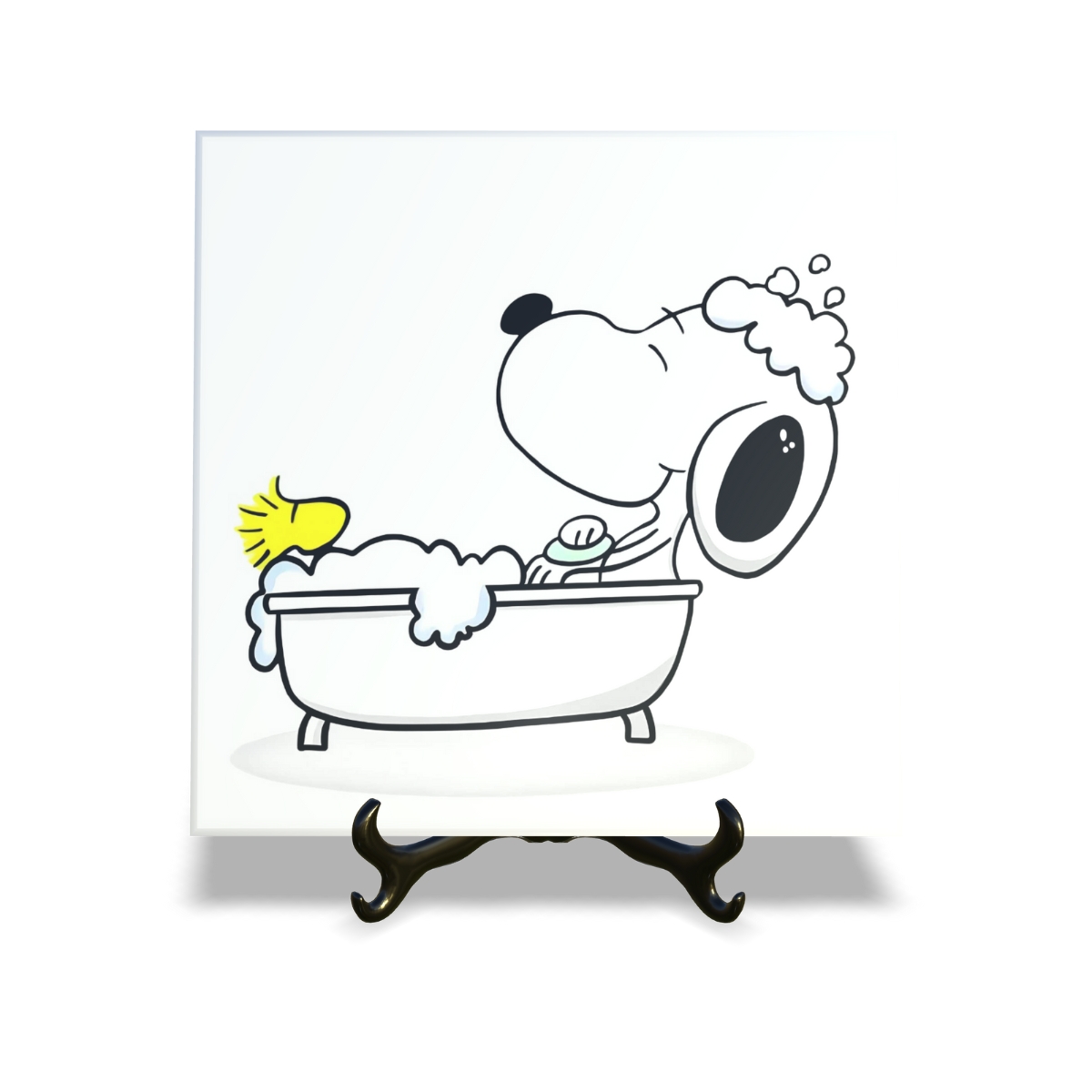 - > Quadro Azulejo Snoopy Na Banheira com suporte Orathea