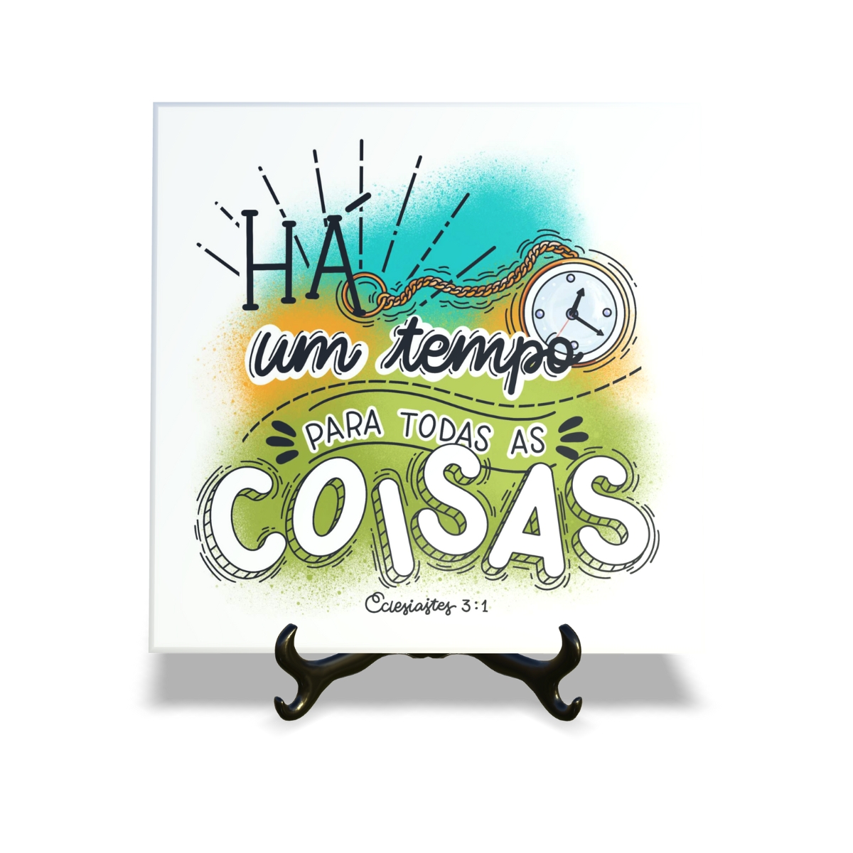 Quadro Azulejo Tempo para todas as Coisas com suporte Orathea Decorativo Religioso
