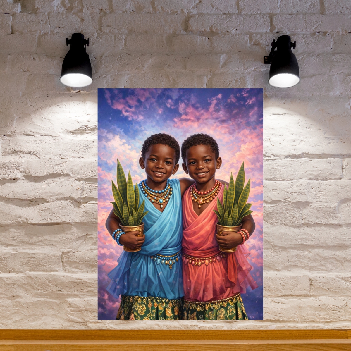 Quadro Ibejis Placa em MDF 20x27cm Decorativo Orathea
